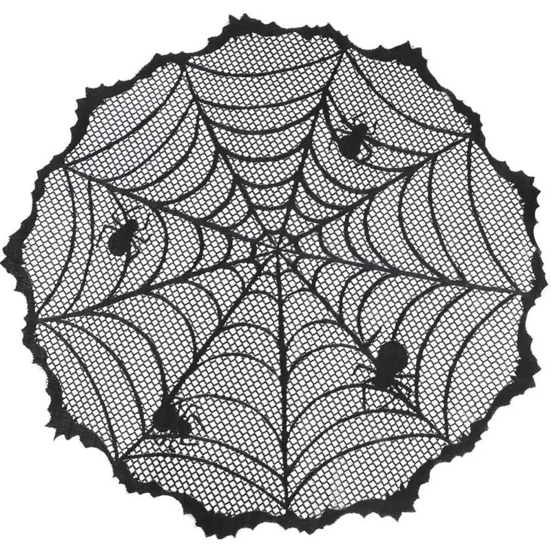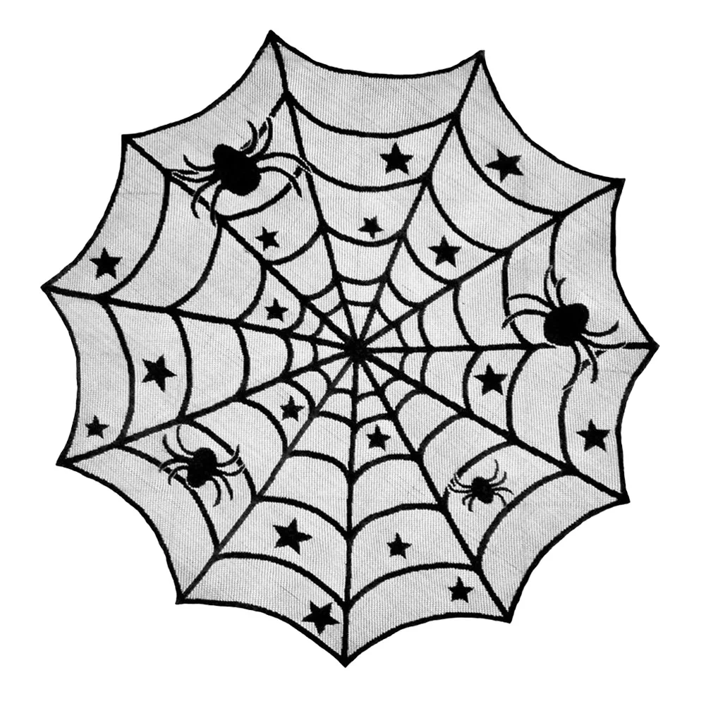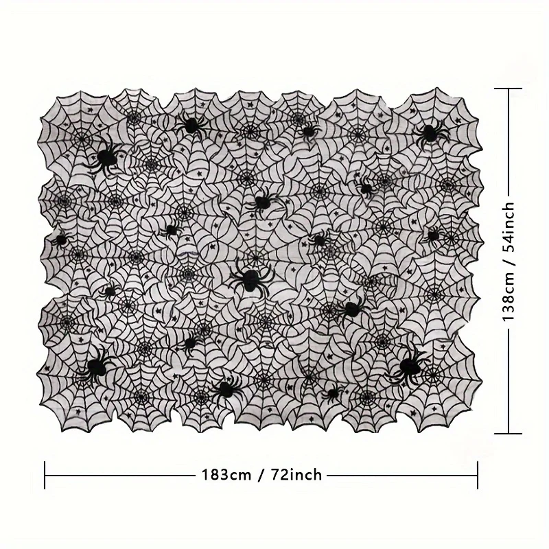 Halloween Spiderweb Tablecloth Black Lace Cobweb Decor with Spiders for Fireplace Mantle Kitchen Party Table Decorations