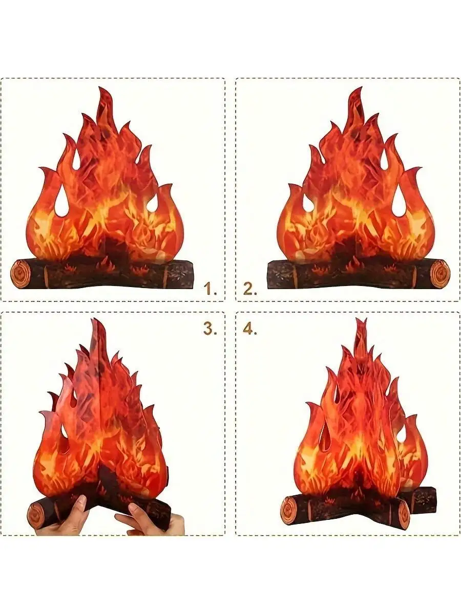1pc, 3D Halloween Fire Decorative Cardboard Bonfire Centerpiece (10.63" X 11.81") Artificial Fire FakeFlame