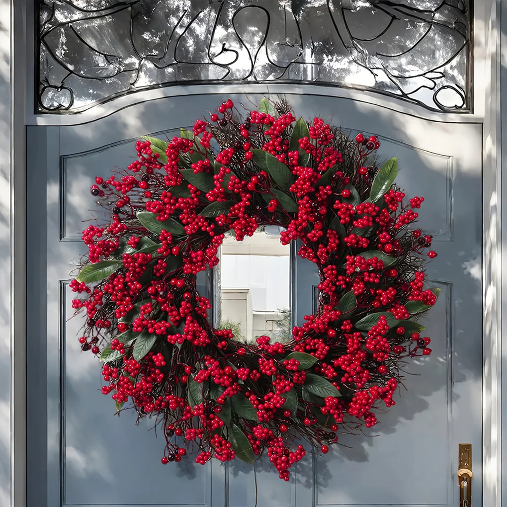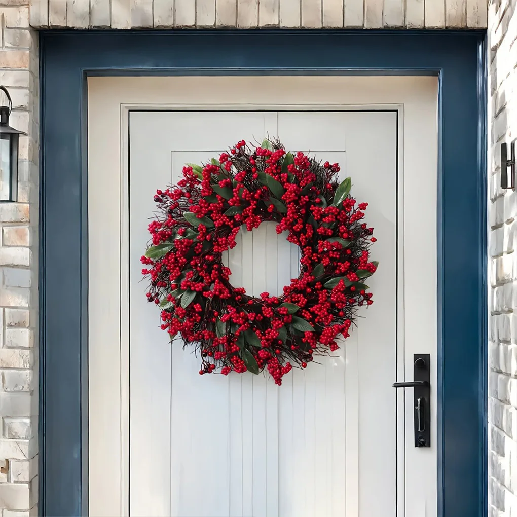 2025 New Christmas Decoration Wreaths for Front Door Handmade Cypress Leaf Red Berry Pine Wreath Xmas Home Wall Window Decor