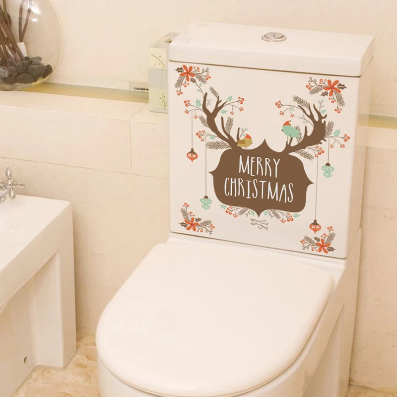 Merry Christmas Elk Antlers Wall Sticker Home Decor Glass Windows Wallpaper Festival Christmas Decoration Mural Toilet Decals