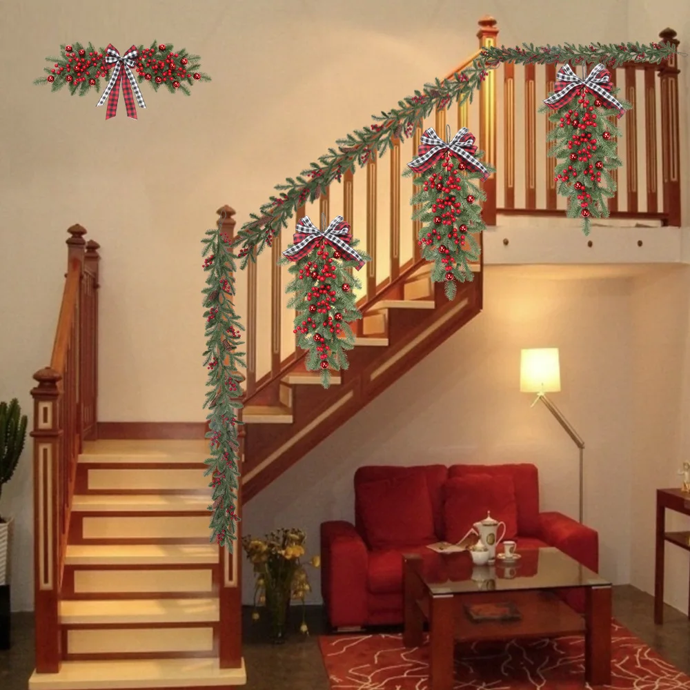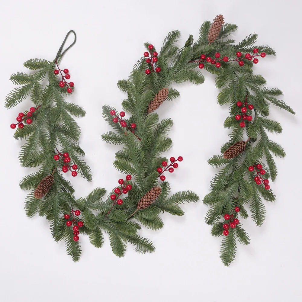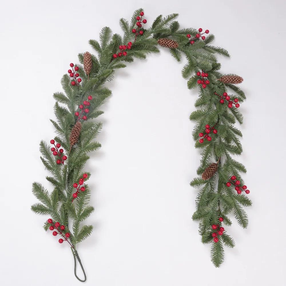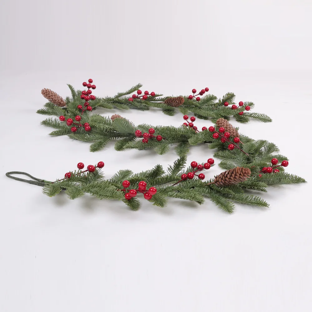 YeeNanee Realistic Christmas Spruce Garlands with Pinecone Red Berry Greenery Pineneedle Vine for Home Fireplace Mantle Decor